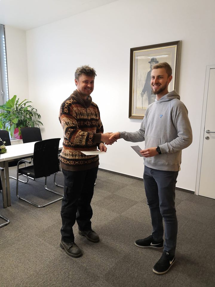 V tomto týdnu předal pan děkan našemu studentovi Jakubu Koníčkovi poukaz na pobyt v Karlově a stipendium za vítězný návrh novoročního přání pro Přírodovědeckou fakultu UP. Blahopřejeme!